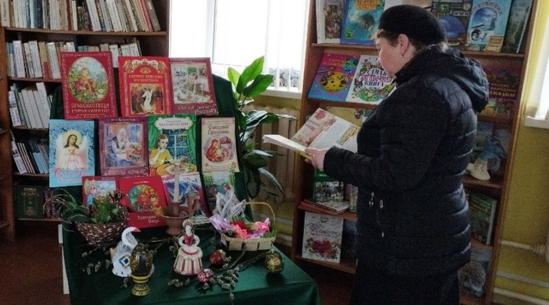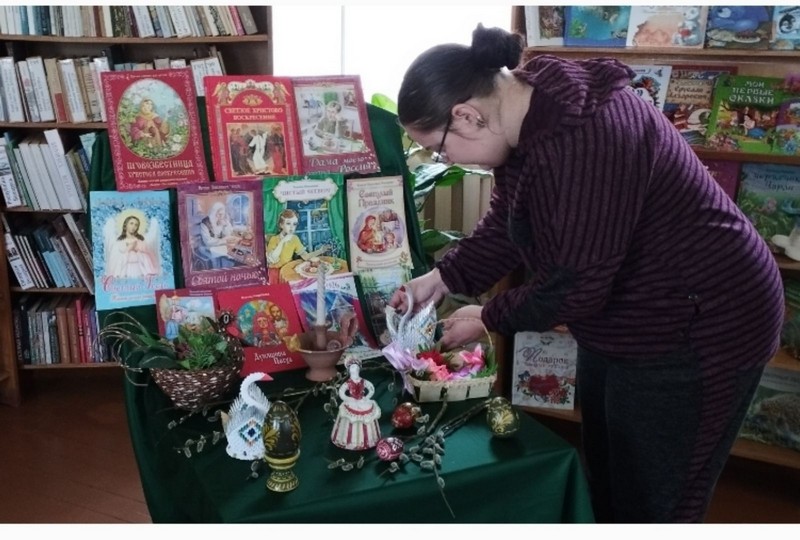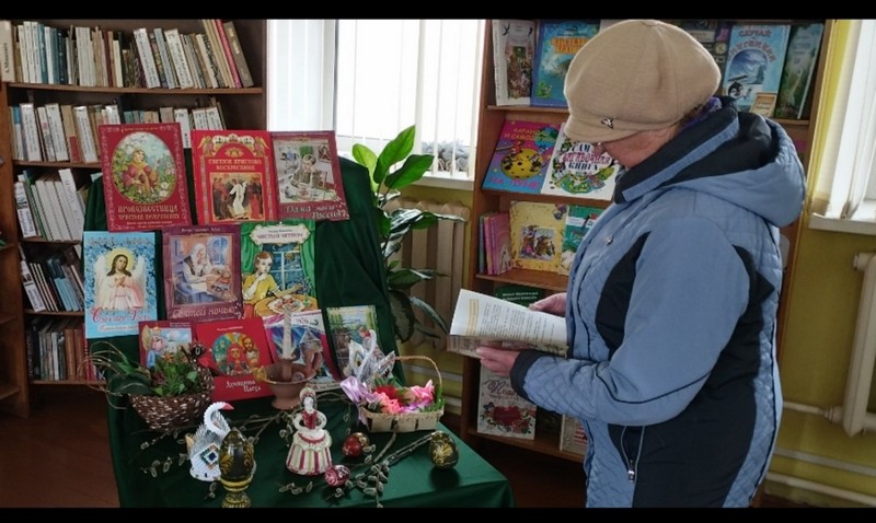 В Мирской ГПБ к самому светлому празднику оформлена выставка-атрибут «Светлое Христово Воскресенье». Наряду с книгами об истории и символах празднования Пасхи, на выставке представлены крашеные яйца, веточки вербы, цветы.