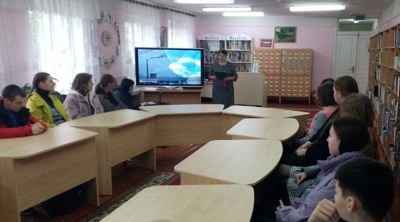 У час гістарычнага экскурса “Чернобыль: судьбы, события, память”, які адбыўся ў раённай бібліятэцы, вучні 9 класа даведаліся пра тое, які след пасля сябе пакінуў Чарнобыль, пра подзвіг ліквідатараў, эвакуацыю насельніцтва з забруджаных земляў. У дапамогу – прэзентацыя і кніжная выстава “Ченобыль. Память не меркнет”.