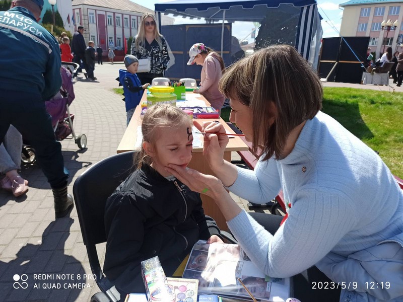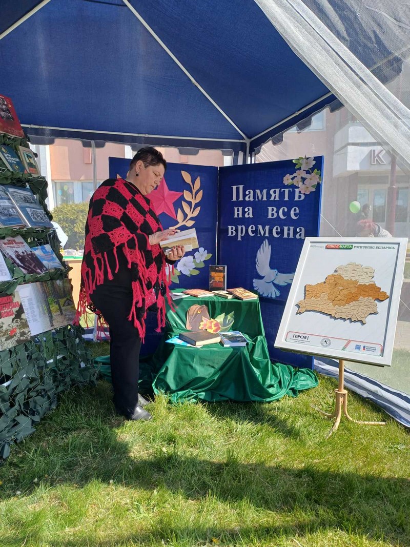 Вялікай Перамозе прысвячаецца…9 мая з самай раніцы бібліятэкары Карэліцкай раённай бібліятэкі прынялі ўдзел у тэатралізаваным прадстаўленні “Минувших лет живая память”. На плошчы 17 Верасня, дзе ладзілася галоўнае свята, жыхарам пасёлка прапанавалі інтэрактыўную пляцоўку «Пабедный май», дзе прадставілі разгорнутую выставу “Дорогая сердцу книга о войне” з галіновай і мастацкай літаратурай, фотазону “Память на все времена”. Для дзяцей працавала гульнёвая пляцоўка, на якой матулі і таты з немаўлятамі мелі магчымасць весела бавіць свой вольны час. Падлеткі гулялі, малявалі, складалі пазлы. А для самых “модных” хлапчукоў і дзяўчынак працаваў салон “Аквагрым”.