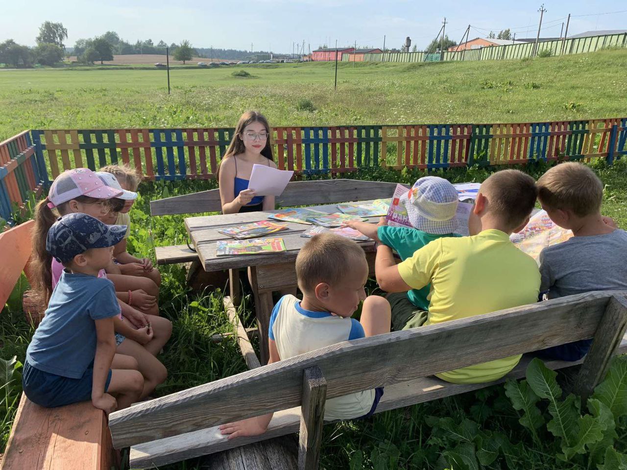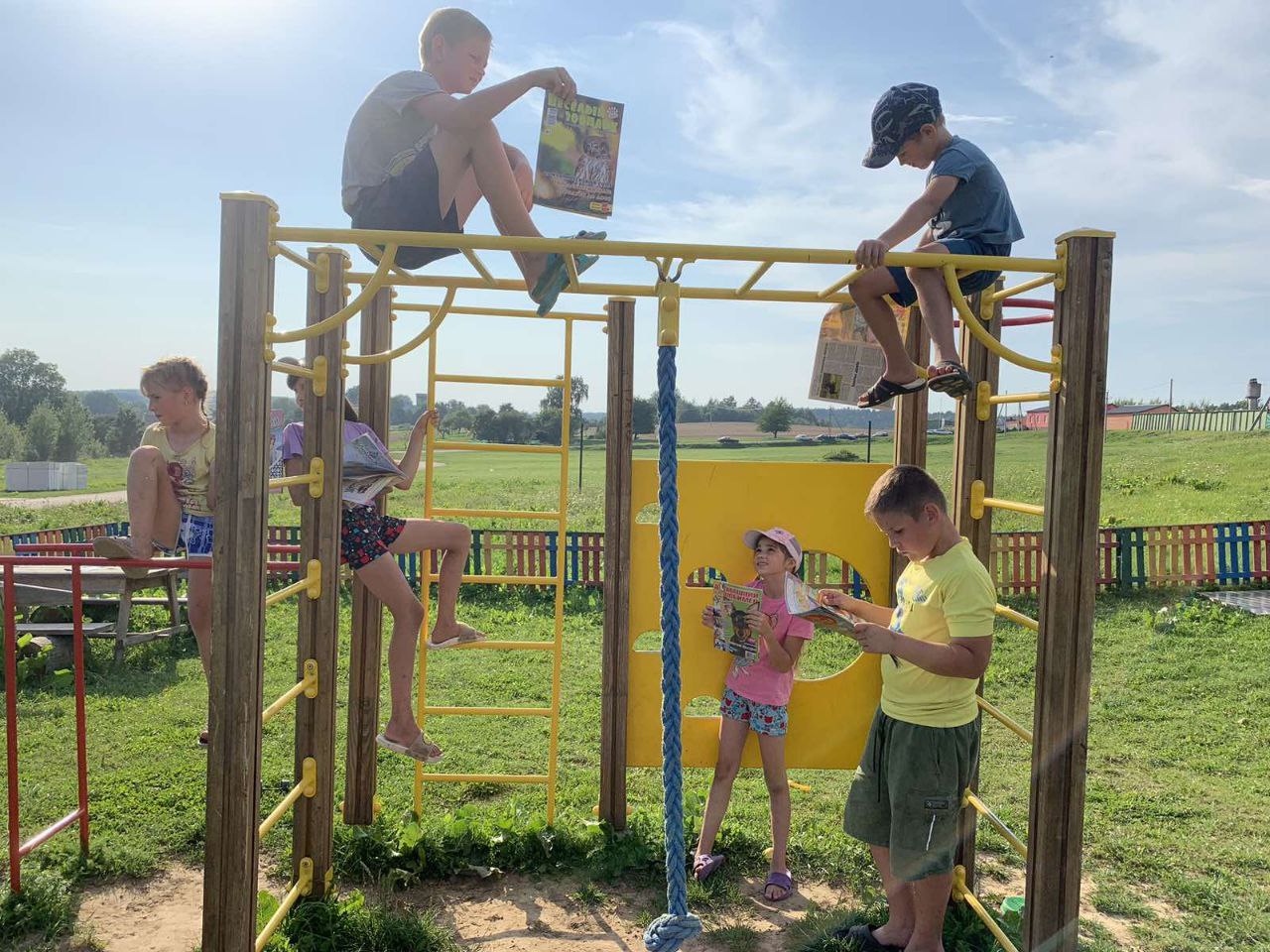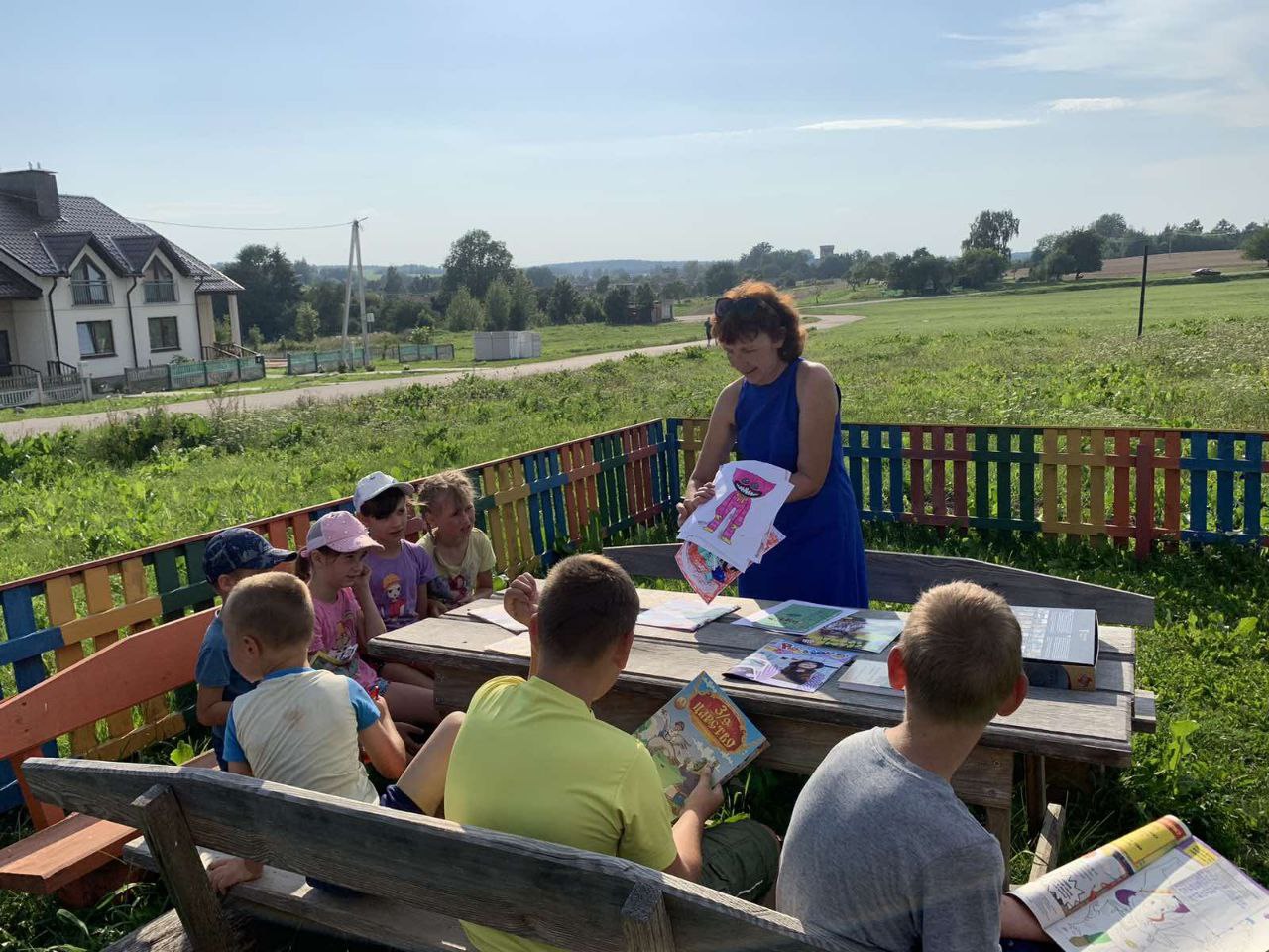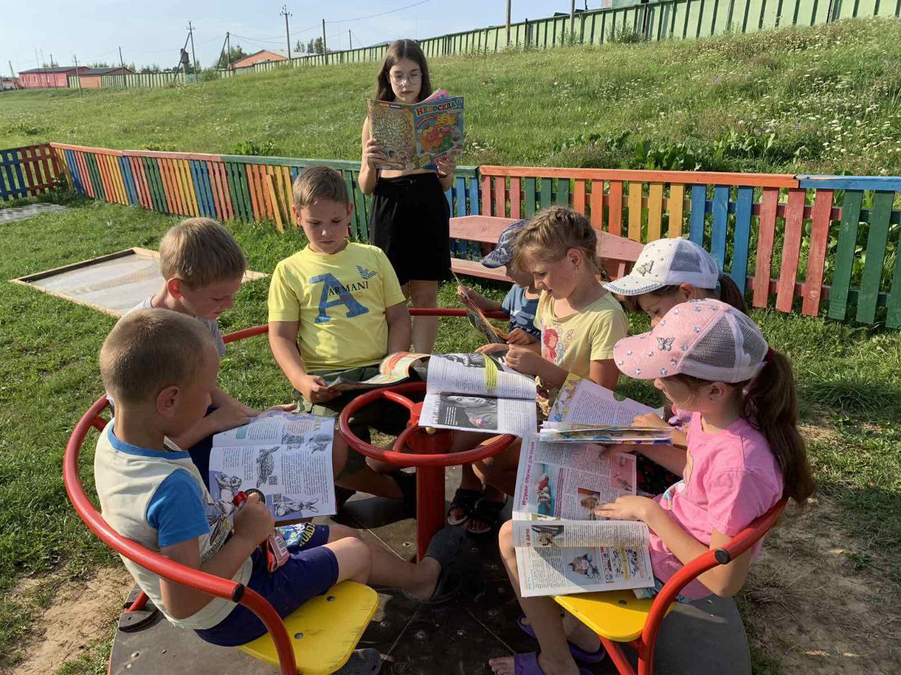 Библиотекарь Райцевской СБ посетила детскую площадку, где для ребят провела литературную разминку «Веселые загадки». Ребята отгадывали загадки и вспоминали из каких сказок персонажи, также по картинкам угадывали героев мультфильмов. Потом все дружно читали интересные рассказы из книг и журналов.