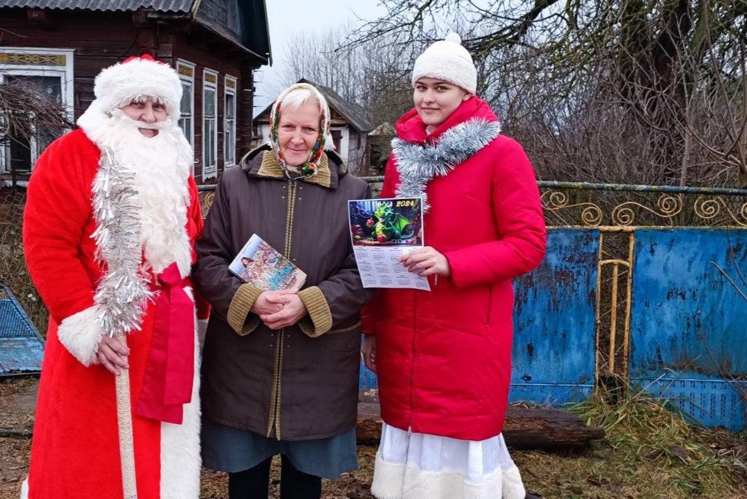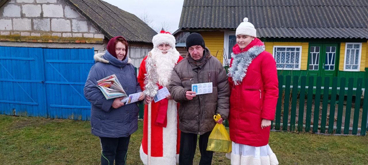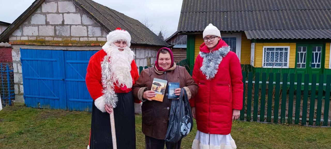 Накануне зимних праздников книги и периодику на библиобусе привозят сельчанам Дед Мороз и Снегурочка. Сегодня по маршруту Тарасовичи — Великая Слобода началась акция — поздравление «С Новым годом! С Рождеством!». Читатели услышали тёплые слова поздравления, вручены памятные подарки, подготовленные сотрудниками в виде календарей.