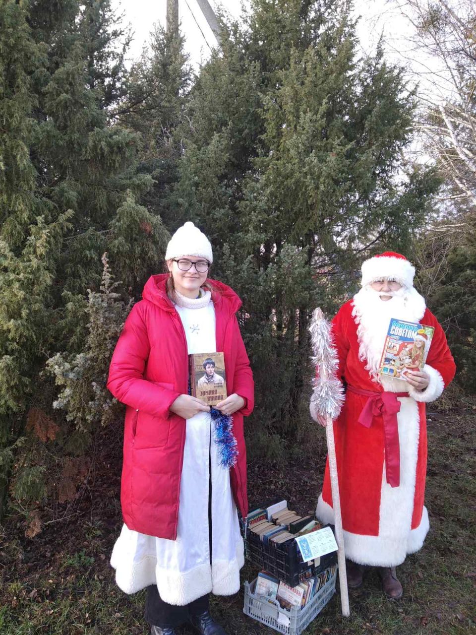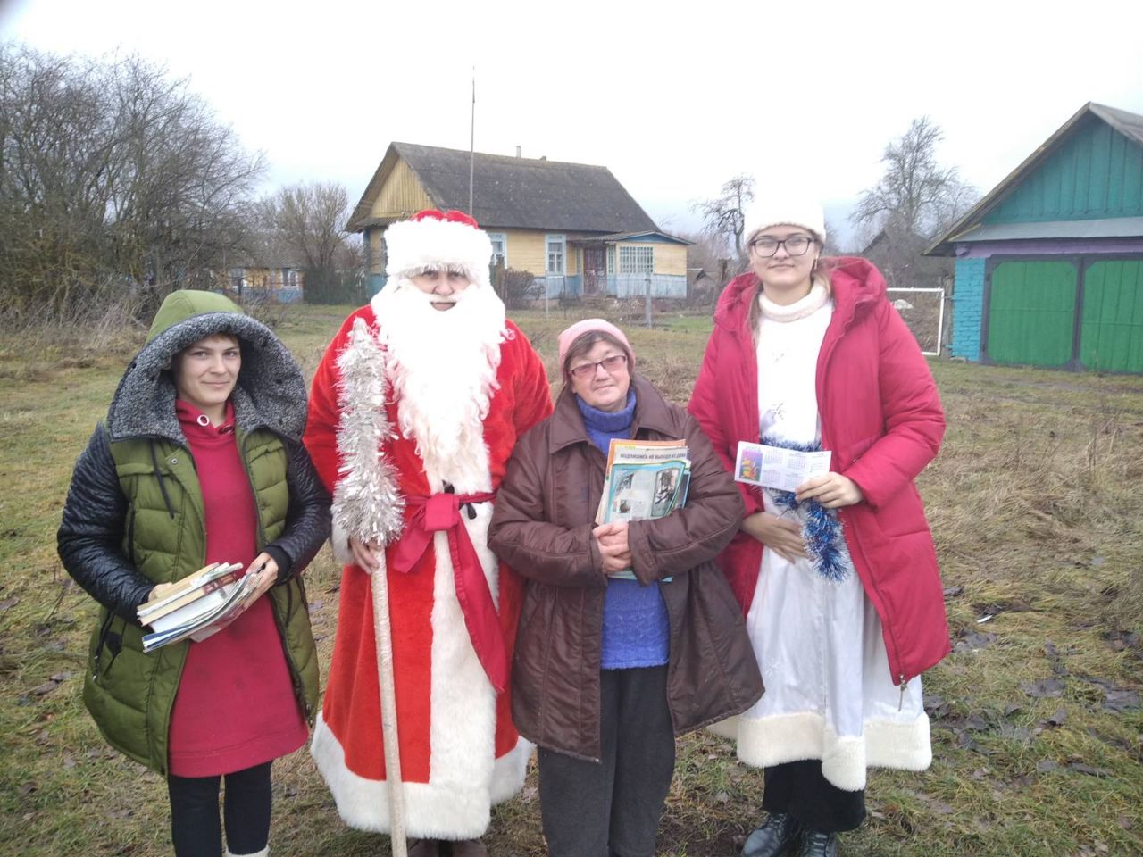 Новогодняя поздравительная библиотечная акция «С Новым годом! С Рождеством!» продолжается для жителей малонаселённых пунктов, где нет стационарных библиотек. Книги, сюрпризы и новогодние подарки привезли Дед Мороз и Снегурочка для читателей деревень Болтичи, Быковичи, Погорелка, Лядки. Впереди ждут новые маршруты, подарки от Деда Мороза и Снегурочки, увлекательное чтение и новогодние сюрпризы.