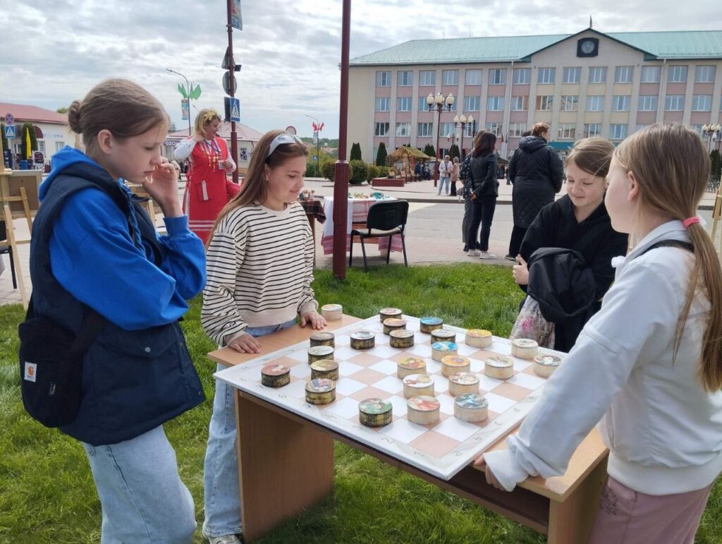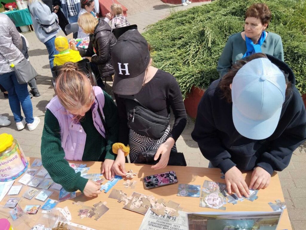 Для участников праздничного мероприятия в День Победы сотрудники Кореличской районной библиотеки организовали интерактивную площадку «Поклонимся великим тем годам». Была организована фотозона. Дети смогли собрать пазлы военной тематики, поиграть в шашки.