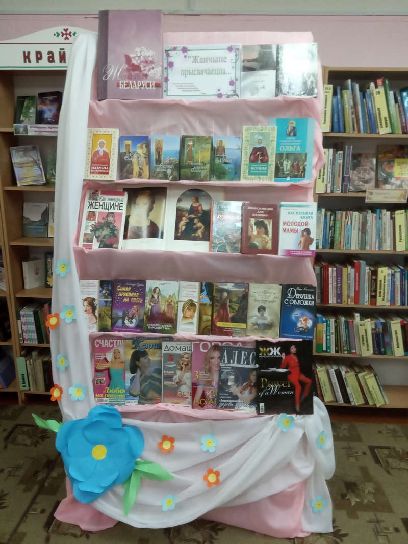 У Карэліцкай раённай бібліятэцы арганізавана кніжная паліца “8 Марта” і кніжная выстава “Жанчыне прысвячаецца…”, дзе кожны жадаючы зможа прачытаць пра гісторыю свята, пагартаць кнігі выдавецтва “Беларускі Экзархат”, пазнаёміцца з кнігамі пра каханне, новымі часопісамі.
