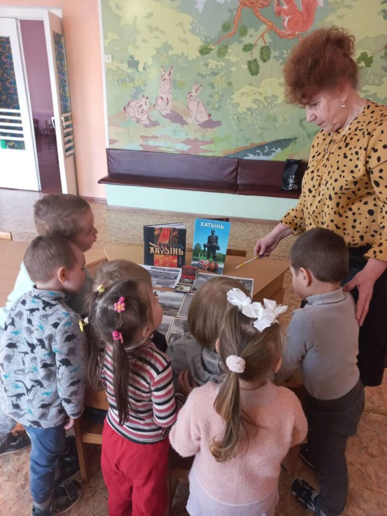 В преддвериии Дня памяти жертв Хатынской трагедии библиотекарь Полужской СБ провела в ГУО «Полужский детский сад» час памяти «Звоны Хатыни». Воспитанники познакомились с историей страшной трагедии, как создавался Мемориальный комплекс «Хатынь», какие памятники есть на территории мемориала. Для лучшего ознакомления был проведён просмотр иллюстраций о войне и трагедии в Хатыни. Дети узнали о стойкости и мужестве тех, кто до последнего момента боролся за свою жизнь, о матерях, закрывавших собой детей, о стариках, не желавших покидать родной дом.