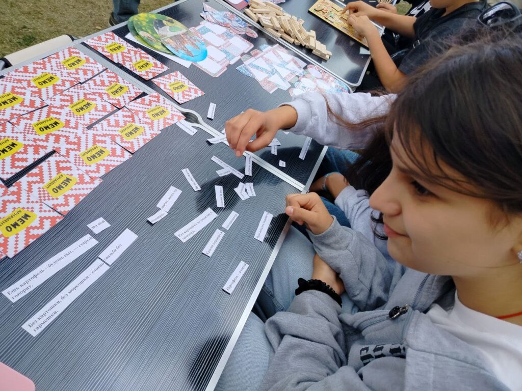 Сотрудники Кореличской районной библиотеки организовали для гостей праздника «Картофельный рай» интерактивную площадку. Для участников праздника был организован турнир по «Картофельным шашкам». На шашечной доске вместо привычных шашек расположилась «царица» праздника — картошка. Юные участники мероприятия играли в домино «Белорусские узоры», МЕМО «Арнамент», складывали пословицы и поговорки про картофель, отгадывали загадки, делали ёжика из картошки и зубочисток.