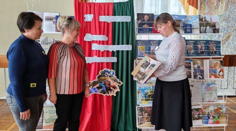 17 сентября сотрудники Кореличской районной библиотеки подготовили книжную выставку «17 верасня — Дзень народнага адзiнства» к праздничному мероприятию «Под небом единым», посвящённому Дню народного единства. Участники мероприятия смогли познакомиться с литературой о суверенной Беларуси, её истории, экономических успехах и достижениях, культурных традициях и государственных символах Республики Беларусь.