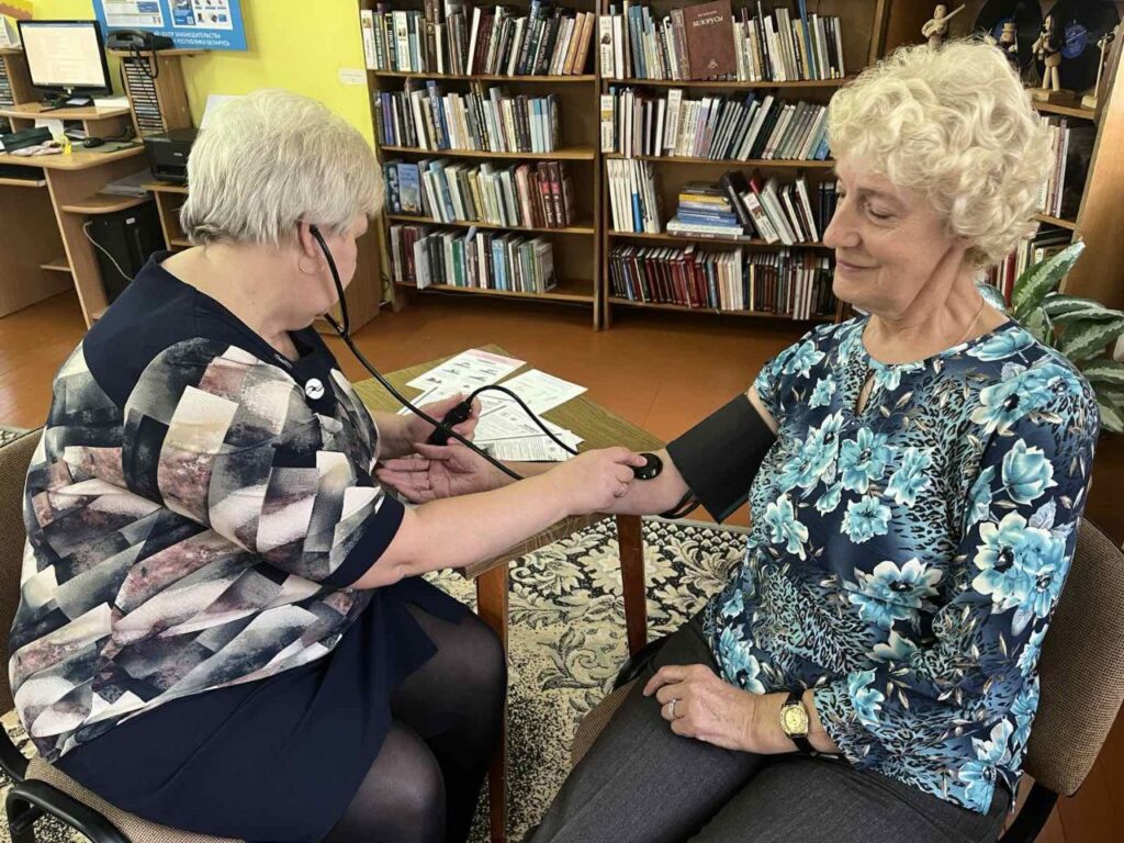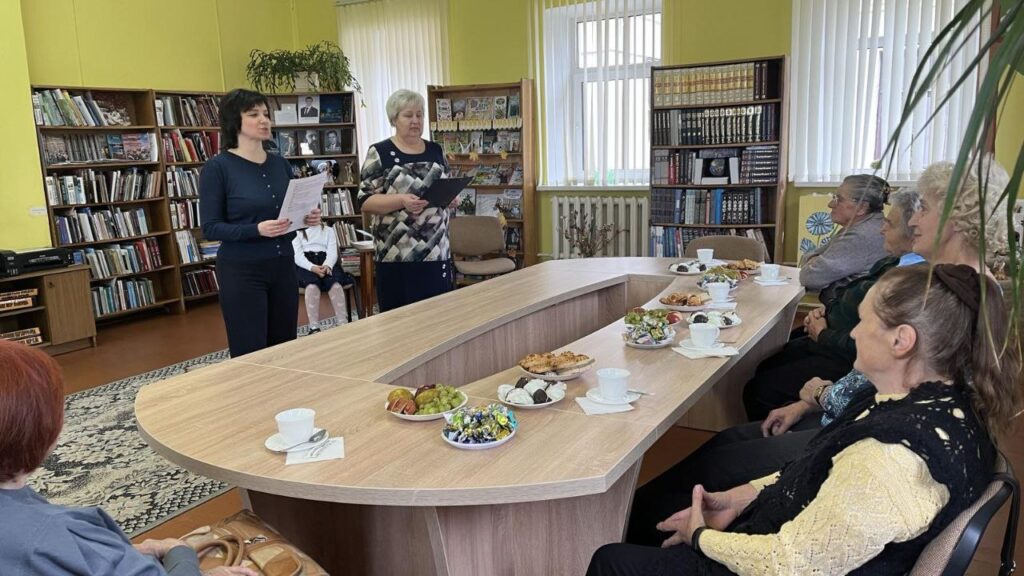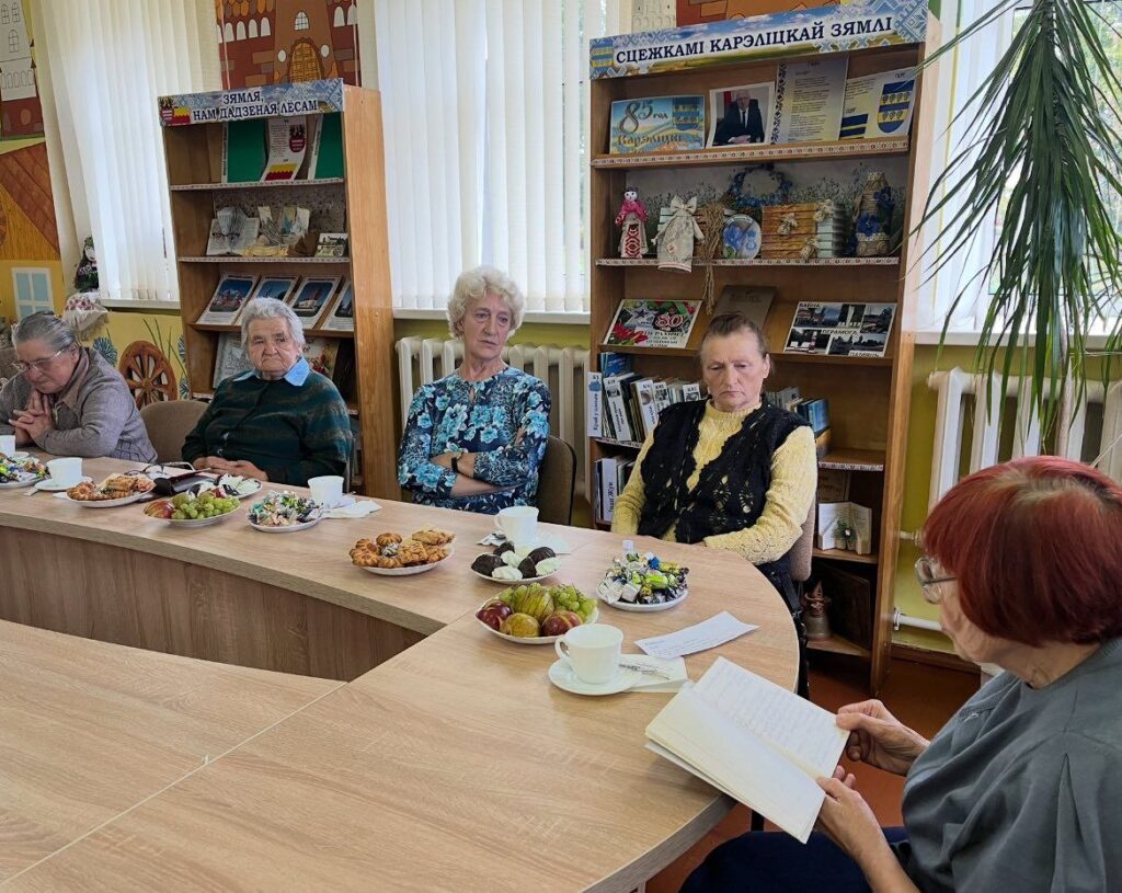 В осеннем календаре есть необычная дата, когда сердце переполняется чувством глубокой признательности, когда хочется говорить слова благодарности, быть особенно чуткими и внимательными к людям – это Международный день пожилых людей. В этот день мы выражаем признательность и заботу старшему поколению, которое накопило бесценный жизненный опыт и мудрость. К этому дню в Мирской ГПБ прошёл круглый стол «С заботой и уважением». За чашечкой чая читатели старшего возраста активно общались, читали стихи, рассказывали интересные и смешные случаи из жизни, принимали участие в конкурсах «Добрые песни о главном», «Рецепт», «Интересные вопросы». Для гостей П. Жанкевич рассказала стихотворение «Бабушкины годы». В рамках проекта «Мир — здоровый посёлок» присутствующие получили рекомендации от валеолога Кореличского районного ЦГЭ Волосевич Л.И. по профилактике сердечно-сосудистых заболеваний с измерением артериального давления. Встреча принесла всем участникам положительные эмоции и хорошее настроение.