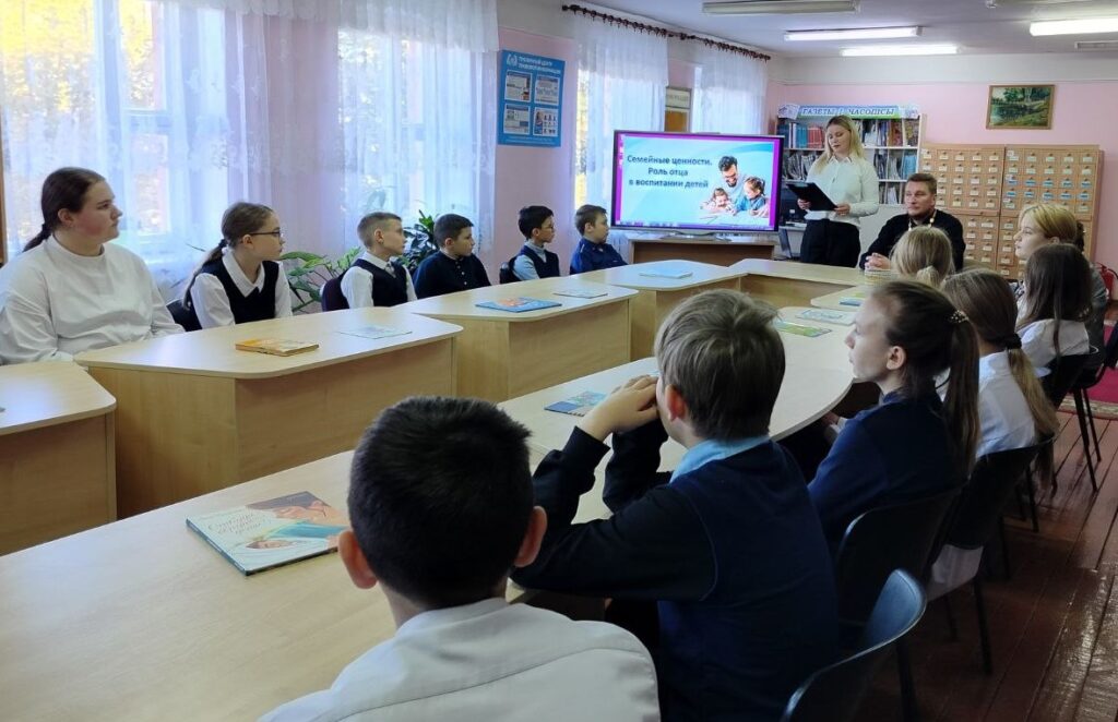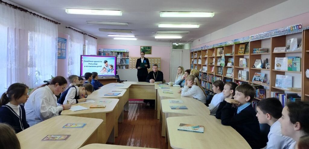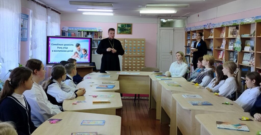 В рамках Недели родительской любви в Кореличской районной библиотеке состоялся круглый стол «Семейные ценности. Роль отца в воспитании детей». Настоятель храма святых апостолов Петра и Павла г. п. Кореличи иерей Игорь Пирог вёл разговор об уважении к своим родителям, о важности семейных ценностей, а также напомнил детям о необходимости почитать своих родителей, слушать их мудрые наставления, беречь и любить тех, кто дал им жизнь. Психолог ГУ «Центр социального обслуживания населения Кореличского района» Елена Юрьевна Окулик отметила, что отец — это не только защитник и добытчик, но и друг, наставник, пример для подражания. Он учит детей мужеству, ответственности и многим другим важным качествам.