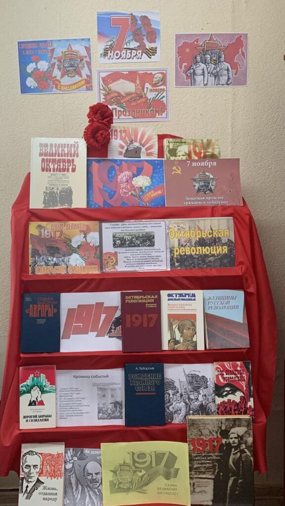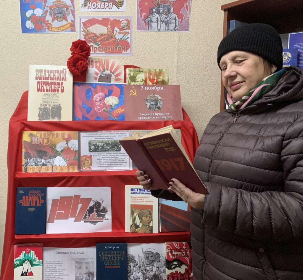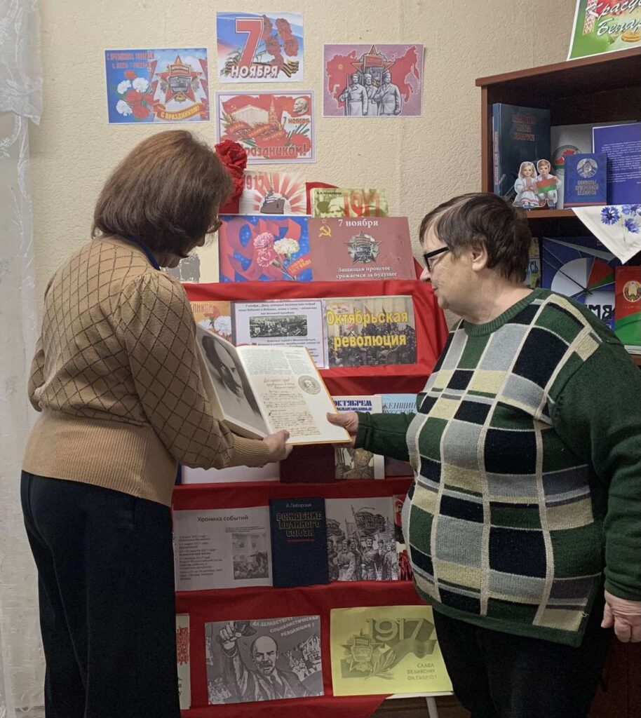 В преддверии Дня Октябрьской революции в Райцевской СБ прошло колесо истории «Негаснущий свет Октября». Библиотекарь рассказала присутствующим о хронологии событий революционного периода. Познакомила с книгами, наглядными материалами, представленными на тематической выставке «Слава Октябрю!», которые содержат интересные факты и информацию о событиях того времени. Сохранение в Беларуси 7 ноября в качестве государственного праздника — это свидетельство того, что прошлое забывать нельзя.