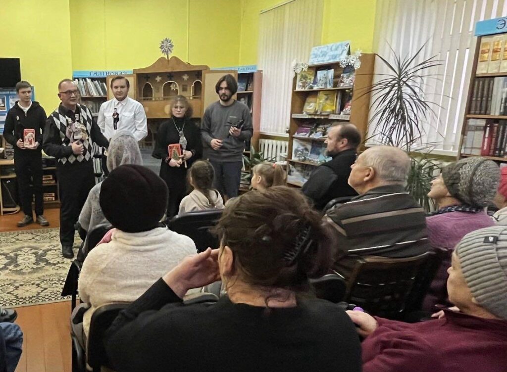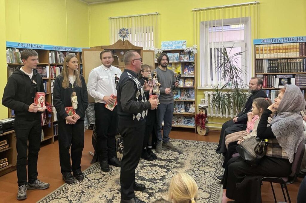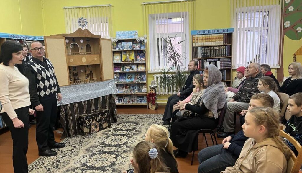 Уже стало доброй традицией в канун рождественских праздников в Мирской горпоселковой библиотеке выступление народного кукольного театра «Батлейка». Художественный руководитель театра Петриман К.Л. рассказал присутствующим историю возникновения Мирской батлейки, а затем их вниманию была представлена постановка «Дары». Всем артистам батлейки была вручены сладкие подарки.