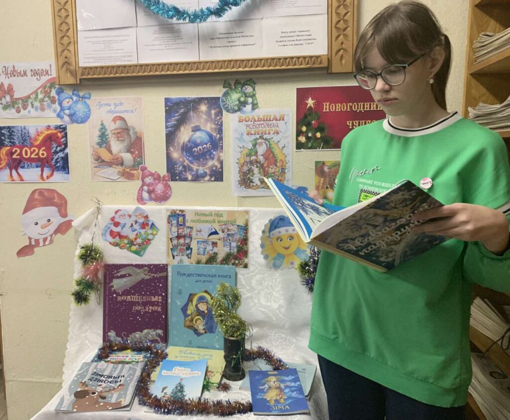В преддверии Нового года библиотекарь Райцевской СБ пригласила юных читателей на праздничную выставку «Новогодние чудеса», чтобы ребята могли окунуться в мир чудес и волшебства, узнать много интересного о самом безмятежном времени года — зиме, новогодних и рождественских праздниках. Дети читали книги, отгадывали загадки о зиме, загадывали желания и делали памятные фото на фотозоне.