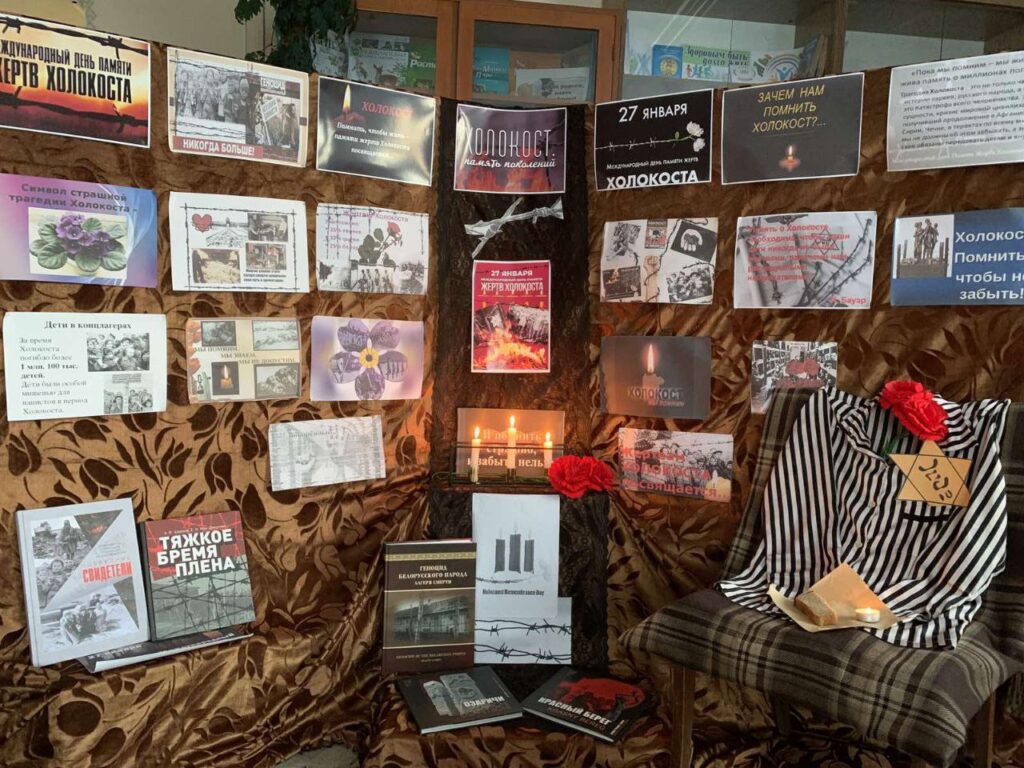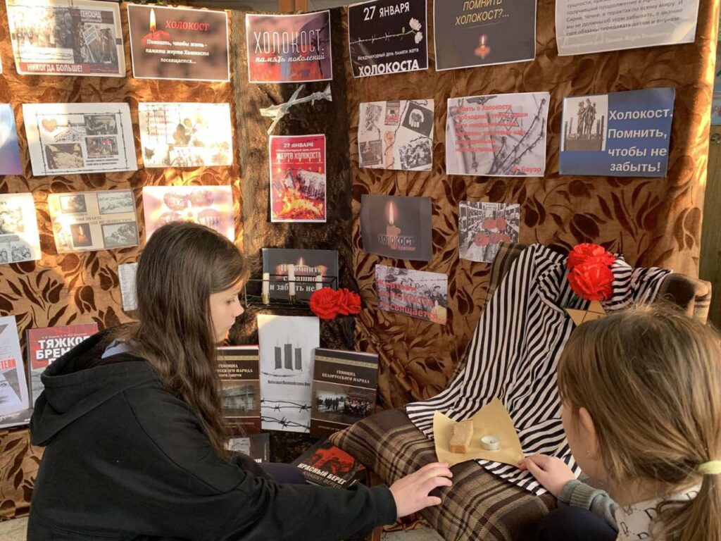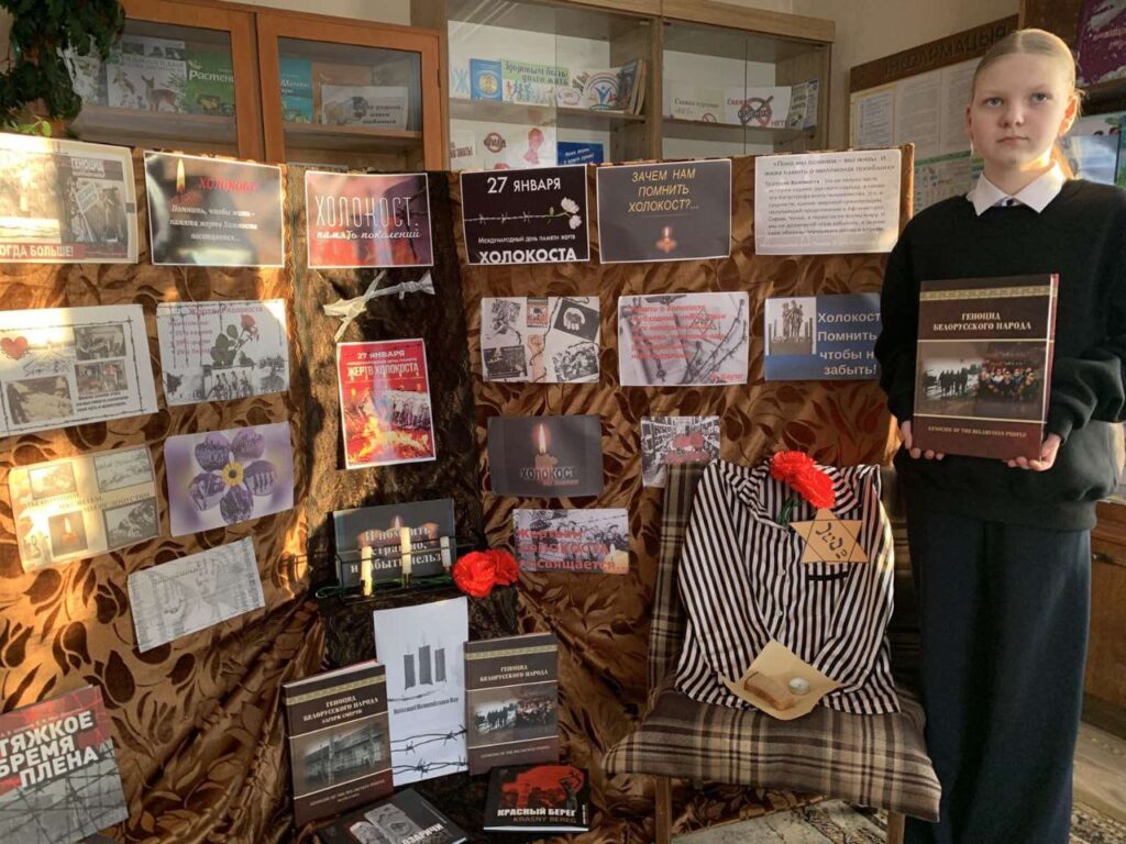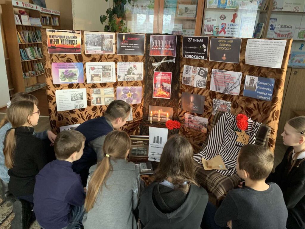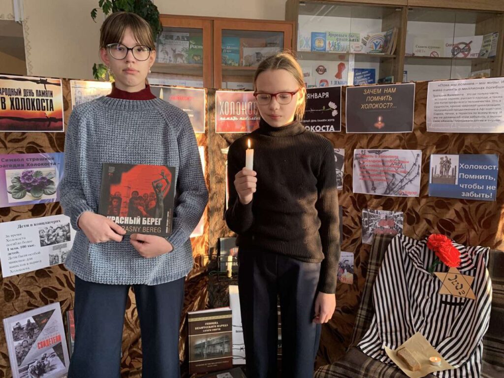 В преддверии Международного дня памяти Холокоста в Райцевской СБ прошёл час памяти «Холокост — пусть поколения помнят». Библиотекарь рассказала ребятам о Холокосте, его истории и зверствах, совершённых фашистами против еврейского народа в лагерях смерти во время Великой Отечественной войны. Дети узнали о концлагерях, которые были на территории Беларуси, о судьбах узников концлагерей о тех, кто, рискуя своей жизнью, спасал от нацистских палачей евреев и детей. В завершении мероприятия ребята почтили память погибших минутой молчания, что стало символом уважения и скорби по жертвам Холокоста. Ведь это наш долг — помнить о погибших и всегда задумываться об ужасах геноцида, делать всё, чтобы такое никогда не повторилось вновь на нашей земле. К мероприятию была оформлена книжно-иллюстративная выставка «Холокост — память поколений».