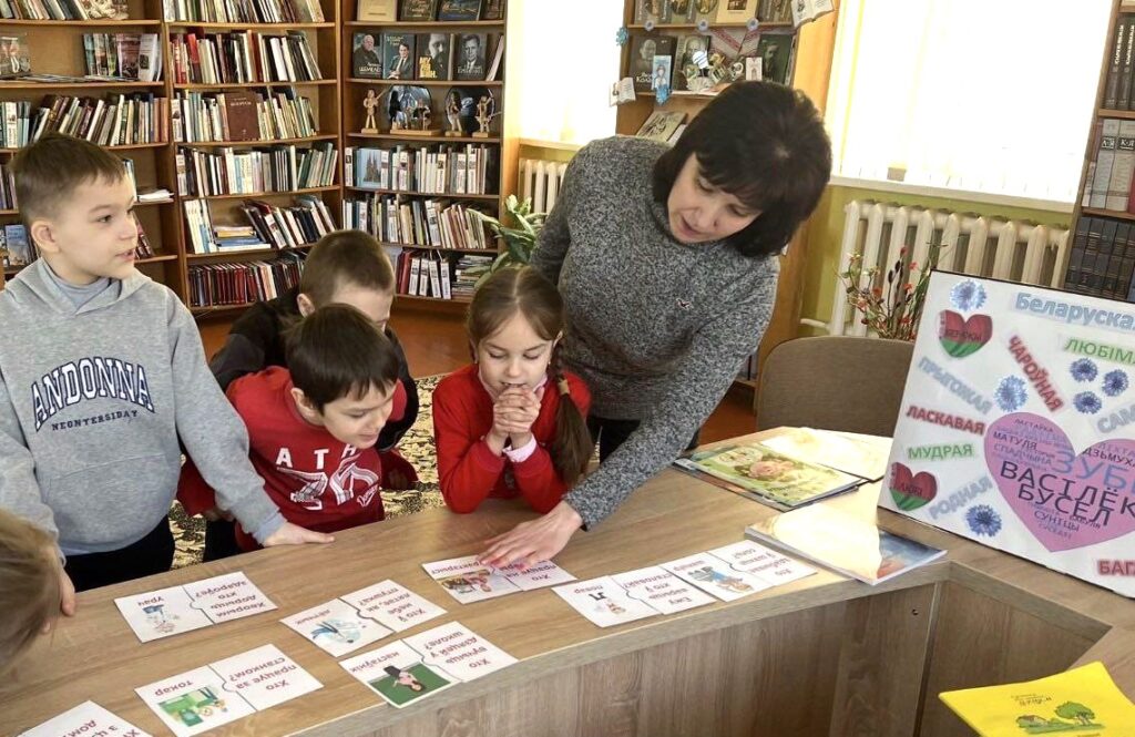 В рамках недели родного языка Мирскую горпоселковую библиотеку посетили маленькие любители белорусского слова — воспитанники школьного лагеря. Для них был проведён час родного языка «Беларуская мова — мелодыя сэрца». Дети отгадывали загадки, играли в игры, вспоминали названия белорусских блюд, собирали пазлы, по описанию угадывали сказочных героев, расшифровывали высказывания о родном языке, знакомились с белорусскими книгами и журналами. К мероприятию была подготовлена выставка “Да роднай мовы крок зрабі”.