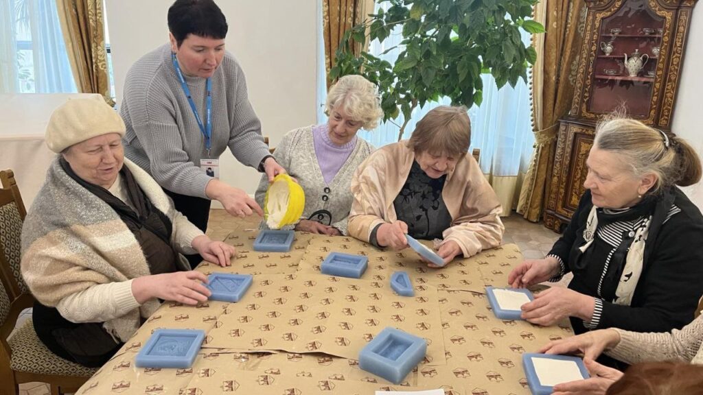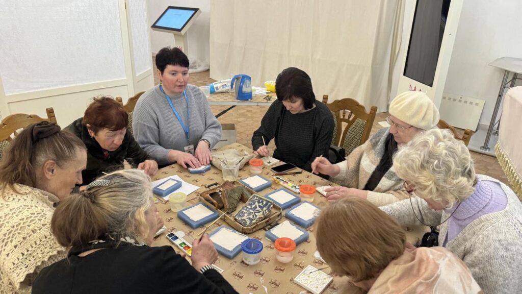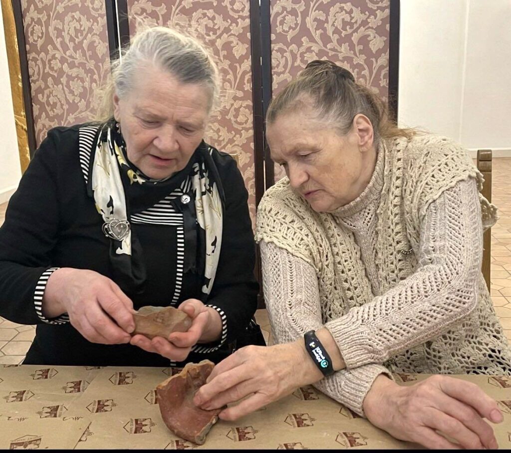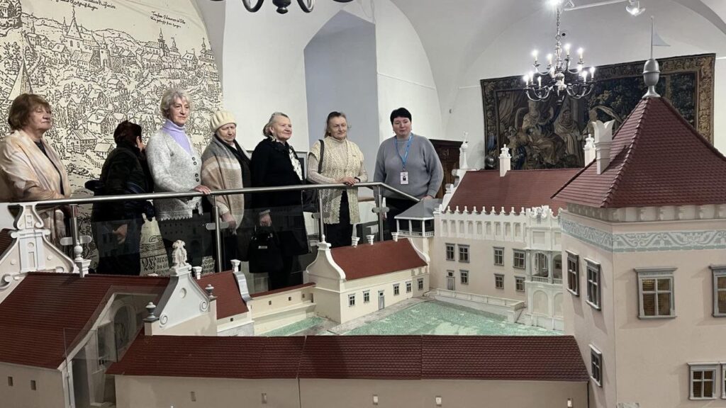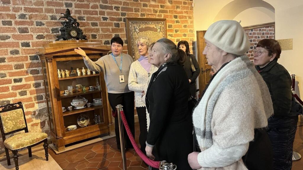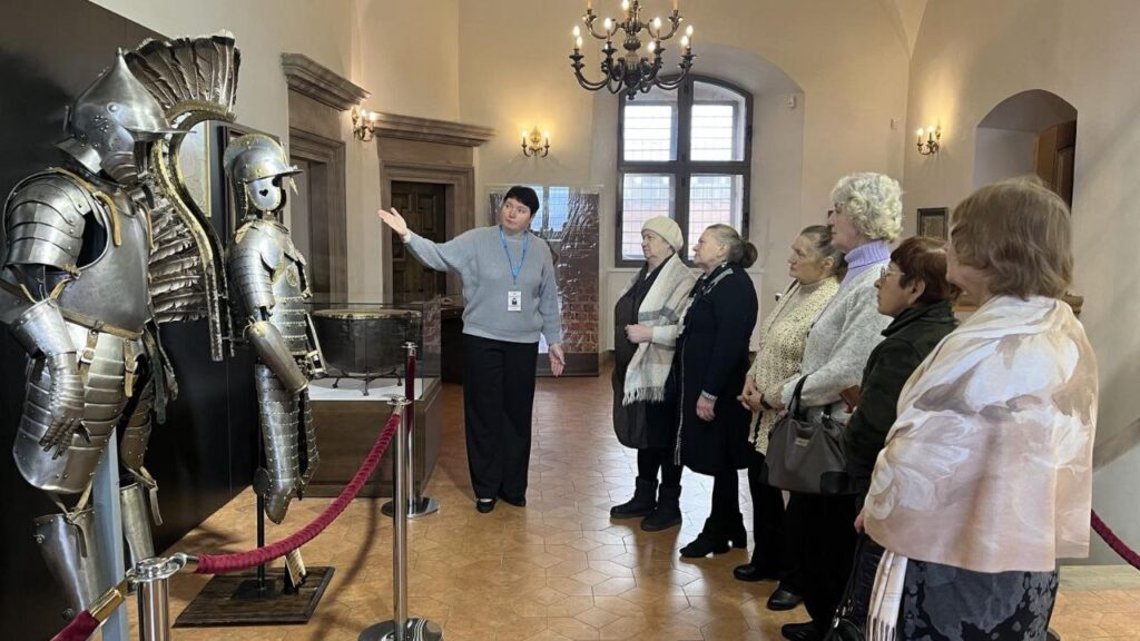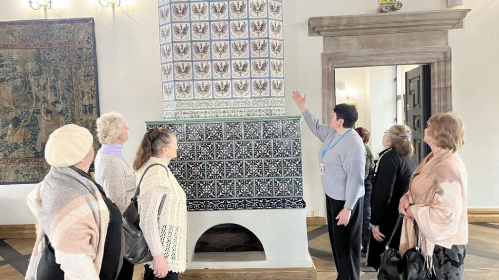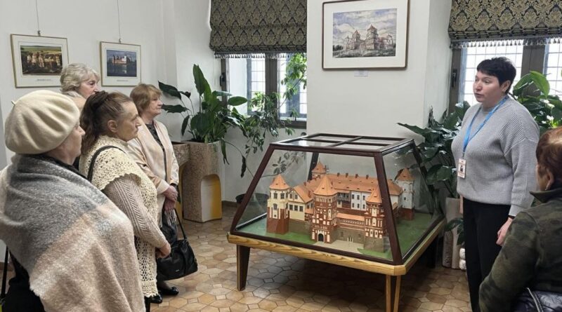 В рамках культурной акции «Гаворым па-беларуску» в Мирском замке состоялась встреча с членами любительского объединения Мирской ГПБ «Золотые годы». Научный сотрудник музея «Замковый комплекс «Мир» Ольга Владимировна Колосовская провела тематическую экскурсию «Владельцы Мирского замка» на белорусском языке. Участники смогли узнать о значимых этапах строительства замка и истории его владельцев: Ильиничей, Радзивиллов, Витгенштейнов и Святополк-Мирских, во время экскурсии по второму этажу Северного корпуса. В продолжение встречи состоялась музейная коммуникативная программа «Тайны изразцовых плиток». В рамках занятия была рассмотрена тема «Печи из коробкового кафеля XVI–XVII веков во дворце князей Радзивиллов». Участники изучили артефакты, найденные в ходе археологических раскопок, и получили возможность создать уменьшенные копии лицевых пластин стенного и геральдического кафеля. Эта акция не только обогатила знания присутствующих о белорусской культуре, но и дала возможность пообщаться на родном языке.
