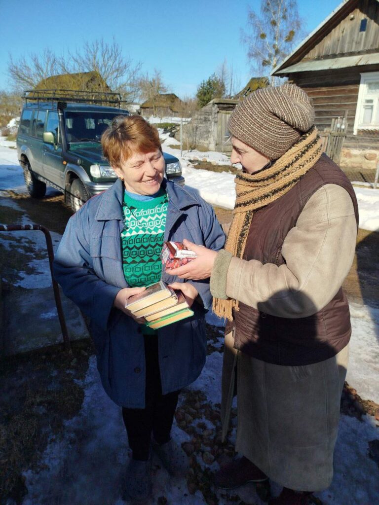 Поздравительную акцию «Для вас, милые женщины!» провела библиотекарь библиобуса Татьяна Рахманько. Она поздравила женщин-читателей деревень Трощицы, Песочная, Радунь, Кожево с наступающим праздником Днём женщин, пожелала душевных сил, крепкого здоровья, дополнив тёплые слова поздравительными открытками и сладкими подарками.