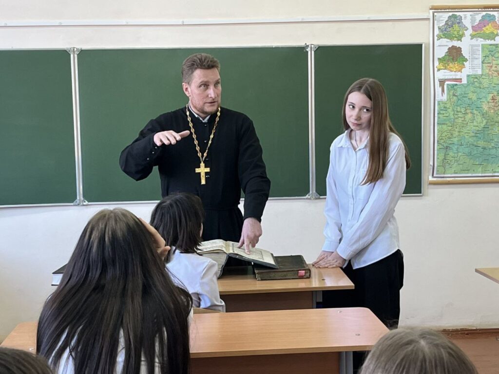 18 марта для учащихся ГУО «Средняя школа № 2 г.п.Кореличи» сотрудники отдела обслуживания и информации Кореличской районной библиотеки совместно с иереем Храма святых апостолов Петра и Павла г.п. Кореличи отцом Игорем провели час духовности «Красота Божьего мира через книги». Участники мероприятия вспоминали историю и развитие православной книги, обсудили её влияние на духовную культуру и жизнь людей, более глубоко погрузились в мир добра, милосердия, сострадания и понимания. Отец Игорь показал детям старинные книги, которые хранятся в Храме святых апостолов Петра и Павла г.п. Кореличи.