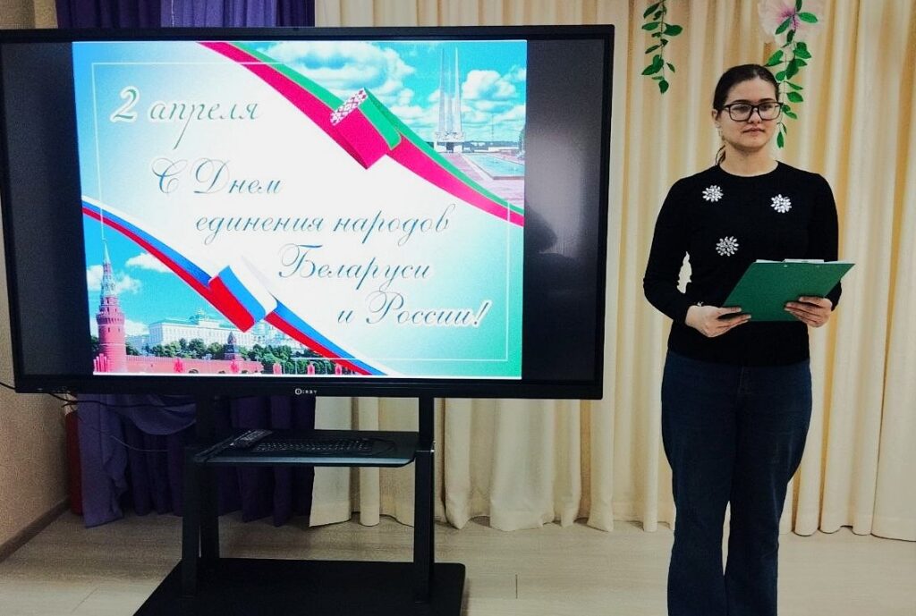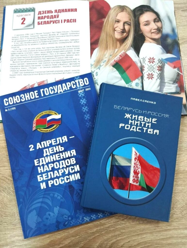 В преддверии Дня единения народов Беларуси и России библиотекари отдела обслуживания и информации Кореличской районной библиотеки и сотрудники ГУ «Центр социального обслуживания населения Кореличского района» провели тематический час «Единством сильные» для посетителей отделения дневного прибывания для граждан пожилого возраста. Участники просмотрели видеоролик, посвящённый теме мероприятия, погрузились в историю и современность сотрудничества двух государств. С большим удовольствием отвечали на вопросы викторин «Мая краіна — Беларусь», «Родная сестра — Россия», перекладывали слова с одного языка на другой, показали знание пословиц о дружбе, угадывали песни. Познакомились с изданиями, которые освещают исторические этапы, предшествующие созданию Союзного государства, а также с материалами о культуре, истории и социально-экономическом развитии стран Содружества. Прекрасным завершением мероприятия стала песня «Две сестры» в исполнении Лидии Казимировны Олесюк и Ирины Казимировны Дорош.