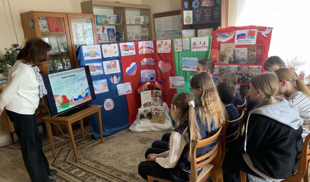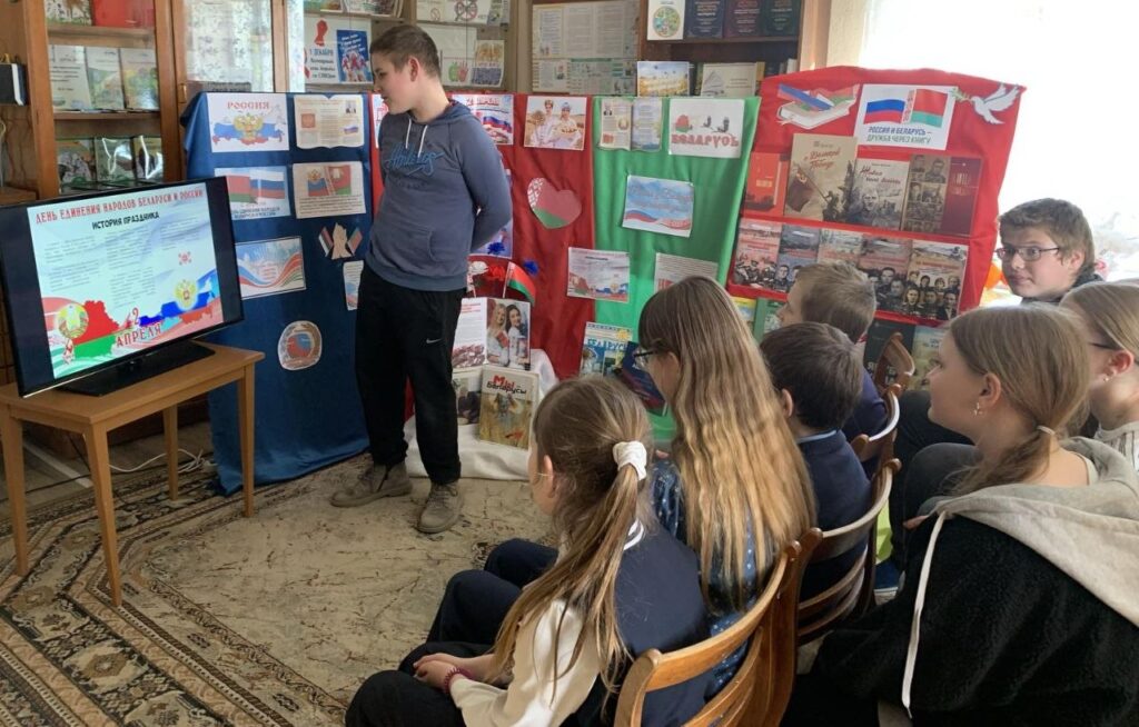 В честь Дня единения народов Беларуси и России в Райцевской СБ прошло информационное досье «Две страны — две сестры». Библиотекарь рассказала детям об истории праздника и его истоках, о том, что наши братские народы объединяет свободолюбие, стремление к единству, миру, дружбе. Ребята познакомились с государственными символами Беларуси и России, поговорили о праздниках, языках, о ценности дружбы между двумя народами, а также была затронута и тема Великой Отечественной войны. Ребята посмотрели фильм «Единством сильны!» и сделали вывод, что это знаменательный праздник, который воплощает в себе наше братство и дружбу, добрососедство,взаимопонимание и всестороннее сотрудничество в самых разных сферах. К мероприятию была оформлена тематическая выставка «Две сестры — Беларусь и Россия».