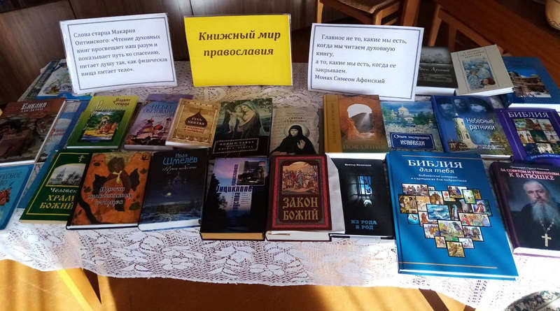 Накануне Дня православной книги в Еремичской СБ оформлена книжная выставка «Книжный мир православия», на которой литература о святых и их жизни. Цитатой к выставке послужили слова монаха Симеона Афонского «Главное не то, какие мы есть, когда мы читаем духовную книгу, а то, какие мы есть, когда её закрываем».
