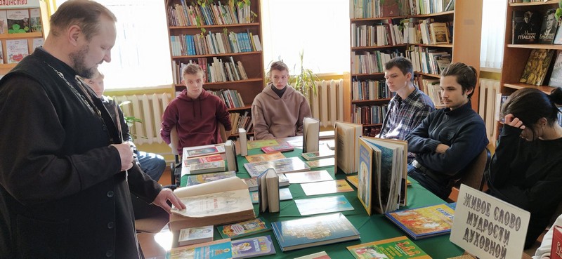 «Живое слово мудрости духовной»- круглый стол в рамках Недели православной книги организован 16 марта в Мирской ГПБ. На мероприятии присутствовали учащиеся Мирского ГХПТК, настоятель церкви отец Фёдор. Для присутствующих проведён обзор книг по православной тематике, молодые люди узнали о жизни святых, об истории книгопечатания. Также вниманию присутствующих была представлена книга Псалтирь 1891 года Мирской Свято-Троицкой церкви.