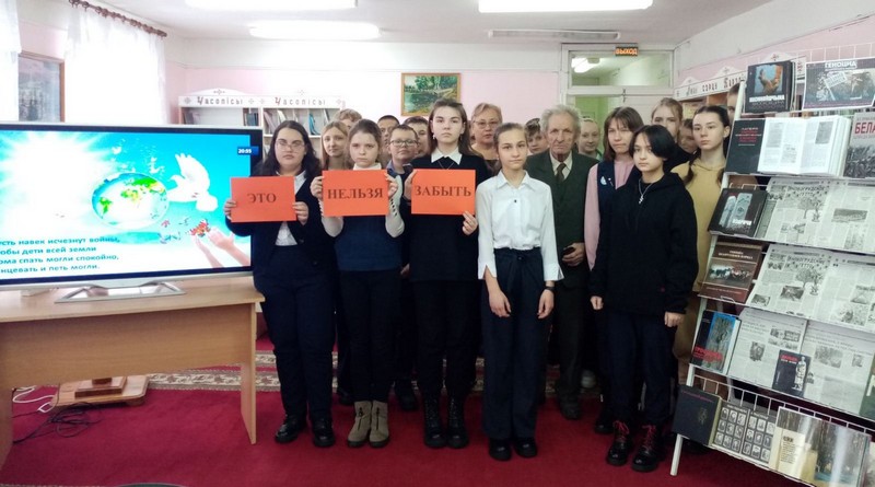 О страшных жертвах Холокоста велась беседа в Кореличской РБ. Библиотекарь отметила, что 1 ноября 2005 года Генеральной ассамблеей ООН принята резолюция, в которой постановили, что 27 января ежегодно будет отмечаться как Международный день памяти жертв Холокоста. Стихотворение Аркадия Кулешова «Минское шассе» прочитала Жук Полина, ученица ГУО «Еремичский учебно-педагогический комплекс детский сад – средняя школа им. В.А.Колесника». Своими воспоминаниями о войне поделился малолетний узник Кришень Глеб Александрович. Презентация «Холокост: больше никогда» ещё раз напомнила подросткам про жизнь, мечты, планы, дружбу детей, про поколение, которое затронула война. Вниманию была представлена тематическая книжная выставка с обзором литературы.